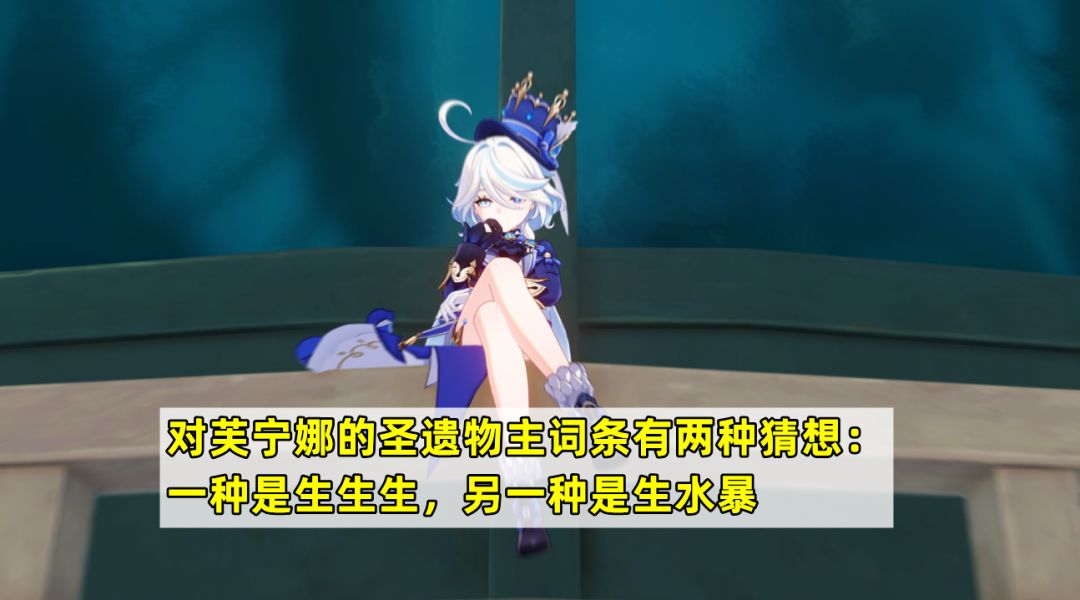 参考过往的版本,在那维莱特喝莱欧斯利之后,水神芙宁娜实装应该也不远了。个人对于芙宁娜的圣遗物词条有两种猜想:一种是像妮露那样的全堆生命,然后给全队带来增益;二是输出向的生水暴主词条,作为后台副C或者是前台主C,主要靠挂水和输出发挥作用。