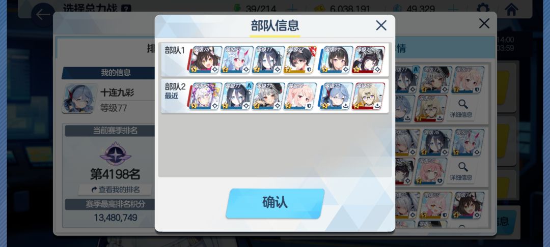 (这个游戏总力是可以借人的,b站贴吧还有各种qq大群有专门的凹分借人群,需要的自己搜自己问,可以嫖大佬的满级满练度角色助你稳定一档)