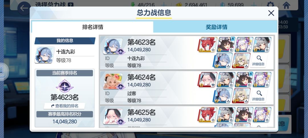 总结一下,后期玩法主要是就是围绕着总力战打(后面还会出演习,大决战,不过那都是很久之后的事情了)总力战的思路反正只要打过当期ex总力并且分数还不错确定可以稳一档的情况下就可以备战下期总力了,当期总力第一次打过ex出分到下期总力将近半个月的备战时间也足够了,如果box太差可以趁早放弃下期总力直接二档摆烂,直接备战下下期就行,按照这样的思路基本上只要不是等级过低或者box太差,每期总力卷个一档奖励拉满是没啥问题的。