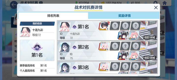 先提一下,我是开服第一天就推图推到7-1了,早早的开了竞技场,和国服第一铁牛大佬一个场,应该是一场无疑了,最难最卷,曾经没刷出来神秘狙的时候只能在四五千名徘徊,因为我之前没有神秘狙天天被人从一千名打到7000名,今天从1700名开始历史最高144,挖到第一属实不容易,买了大概六七次票登顶,开局比较顺利打了个十连胜,加上赛季马上更新了于是想着今天开始挖矿,遇见的基本都是75级角色全五星的佬,而我狗盾小护士大叔只有三星,确实不容易。既然登顶了那我就顺便谈谈这期竞技场,顺便祝各位70级左右的这两天成功登顶。