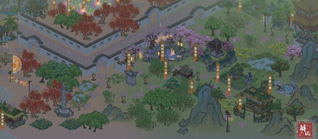 这次是集合了中元节的建筑一起摆放的布局,相比于上次的初稿增加建筑数量,建筑类型