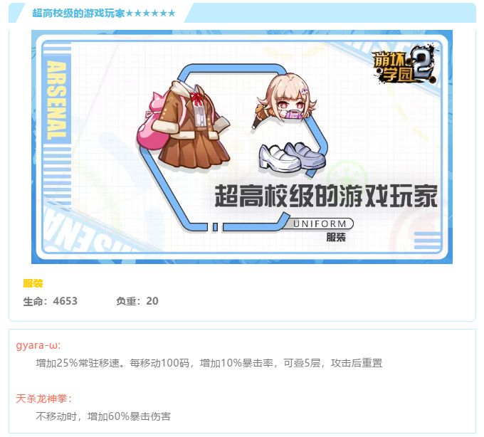 在攻击时停止移动就能与gyara-ω效果一起发动,同时获得50%的暴击率加成以及60%的暴击伤害加成。