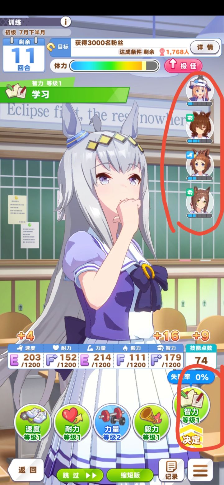 1.ura赛程固定,留意赛程,在中山大奖赛第一次到来前,如果有300左右的耐力,加上技能,进前五问题不大,不太容易翻车。