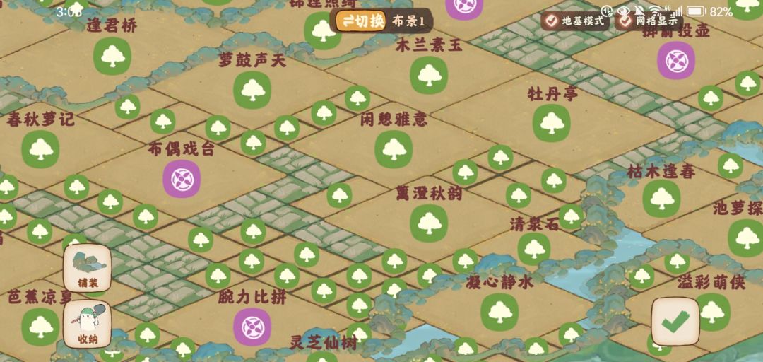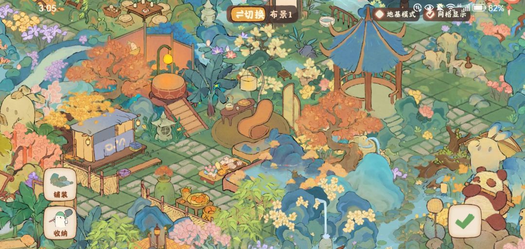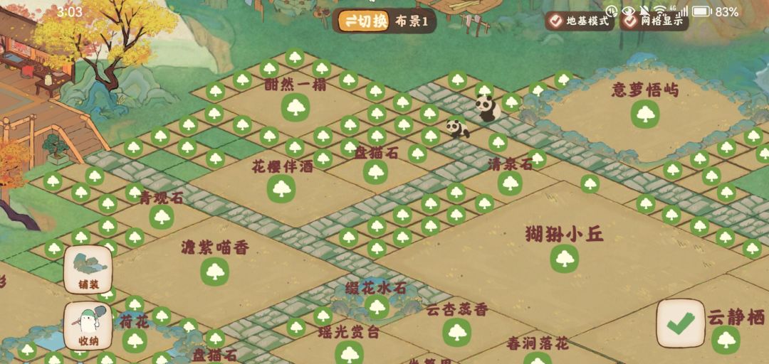 '这次是为了猫猫建筑痛改全局!(以前的可以看我以前帖子~)这次这个红鲤飘尊的值,晚上猫猫房周围亮澄澄暖洋洋的哈哈,借鉴的文夕大大的思路,猫猫也可以通过下面的落樱伴酒上去,门口是不同的草坪,猴山和观赏台可以玩。上面的大黄树建筑是看旁边有黄树比较搭就放过去了,放 水云静栖的时候注意了不挡住它而且还可以遮住这个丑猴子丘!它真的是太大了!之前一直闲置可算解决了。 '左边就是皮影戏台了真的巨大想了想按以前的稍改一下直接放过去了,一个简单的人过的踩栈道过桥过水石的布置。