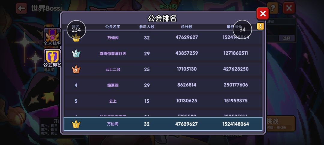 记录通13,9.2,9.3公会柱子个人世界分