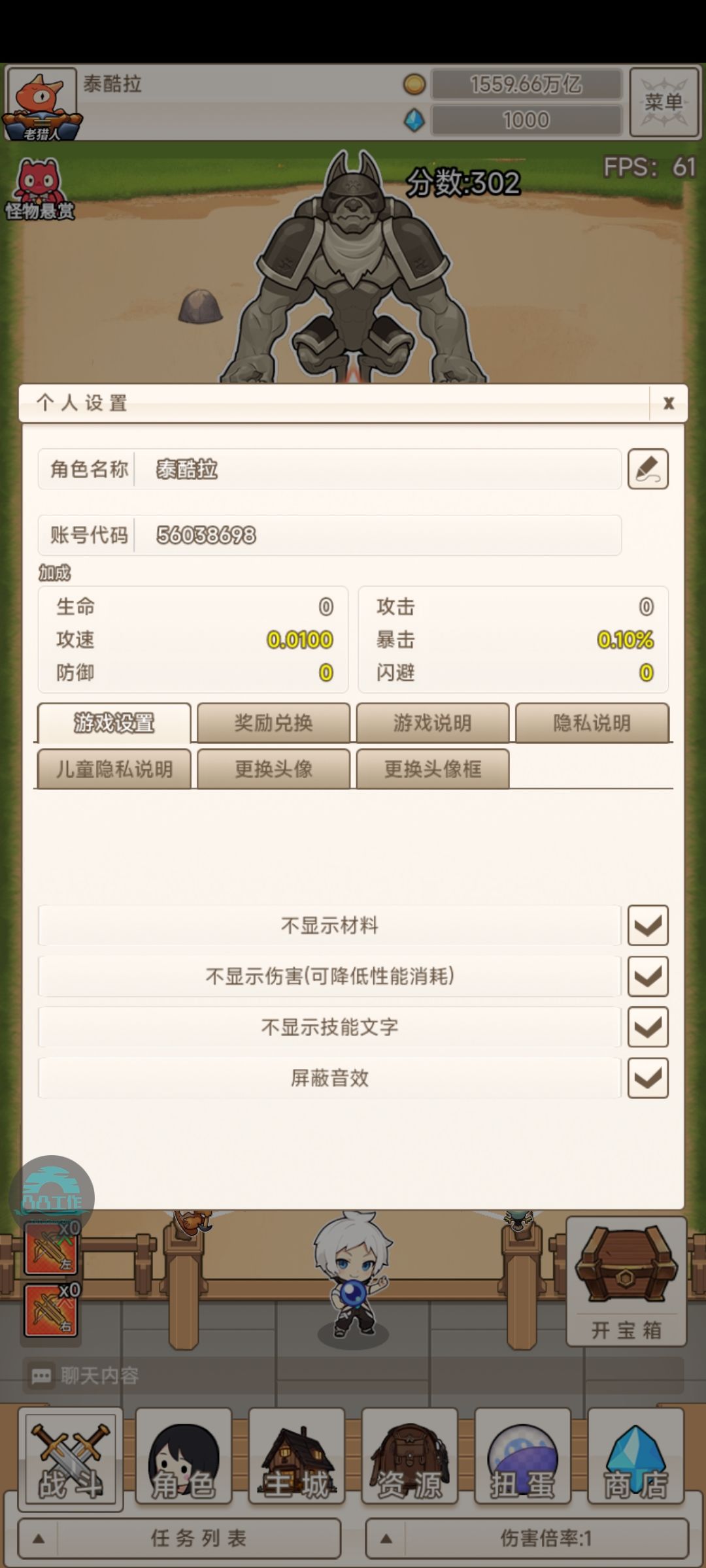 玩这游戏几天了 走了一点弯路 现在给入手朋友一点建议 首先 开局 兑换码进群公告和好评及公众号 游戏浮窗获取 然后用领的奖励去抽角色 前期养第一个幼龙和熊 及狼 幼龙先500可以放着装备带加间隔多的(幼龙等级及攻速影响装备掉落等级及频率) 熊在狼1000级前打金 1000级后狼就起飞了 (狼到1000就不用养了)记得熊和狼的技能要点满(在资源第三栏那里)。至于其他游戏可能要宝物解锁才能起飞 所以不建议升级(金币英雄可以升1000)至于抽英雄和装备不要花砖石 商城的资源也是不要花(土豪随意)资源第四栏的加攻和击和升级消耗减少必须点满 剩下资源中心和材料强化看个人钻石升级