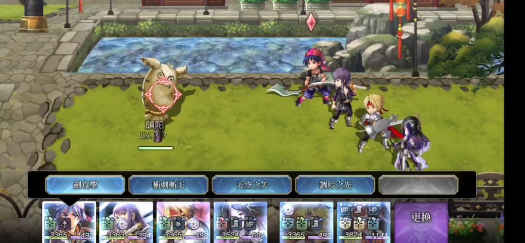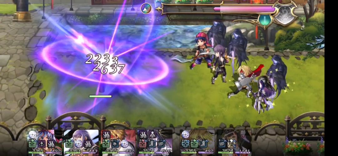 第一回合进入战斗:艾尔席儿赋予全队战斗,队友联手为-水,多娃ES使用祈祷技-赋予队友联手-阴