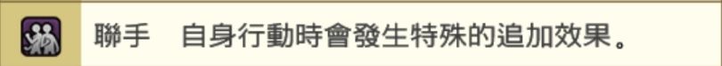 联手:相当于给全体队友的攻击行动时追加特殊效果