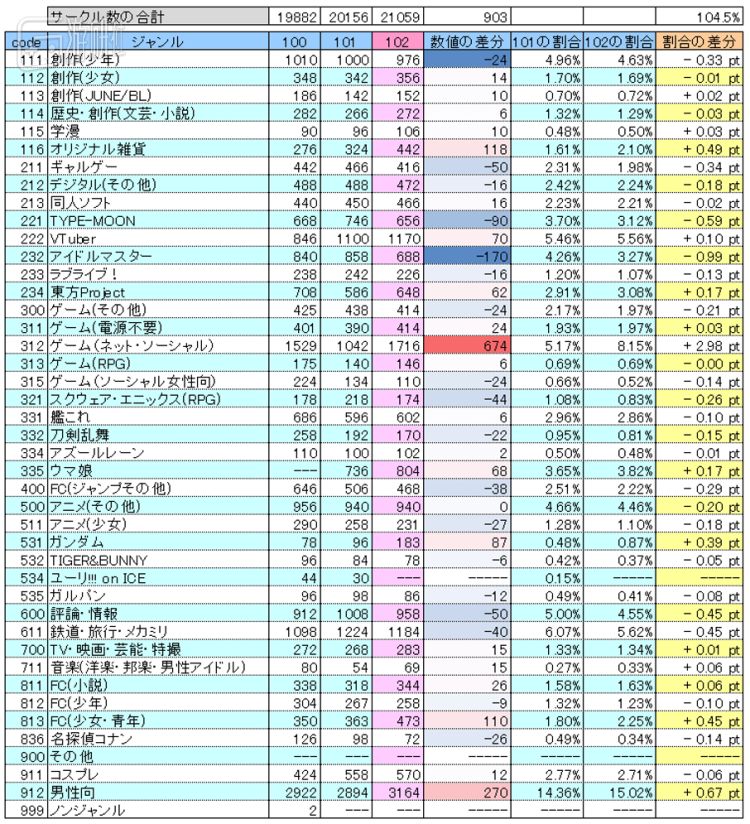 客观来说,摊位数不能直接代表商品数,再由于CM摊位划分的传统,手游页游网游通常被打包划分为同一类,热门项目会因混在大区中难以统计,赛马娘也是在上一届C101才有了自己的分区。