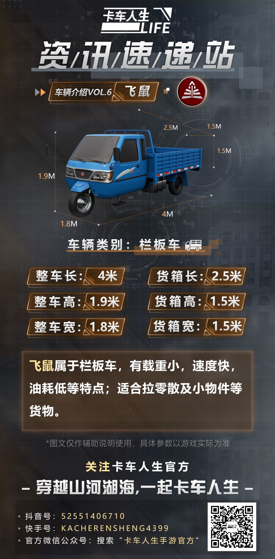 飞鼠以全封闭式驾驶室、便携式栏板更适合多种天气和道路状况,方便自主拆装卸货,更有油耗较低的一大特征,方便在城镇乡道反复穿行也不需频繁补给。飞鼠高效的特性还在于转向灵活,速度快捷,无论是繁杂的集市还是乡村野道,都能轻松驾驭。