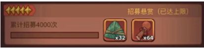 首先我们可以回顾下去年的端午节也是消耗活动,消耗对应的资源获得积分,积分达标即可获得粽子和鼓槌。差不多十个招募≈1个粽子我们就往好的算,如果你累积招募4000次,那就是4000÷10=400个粽子