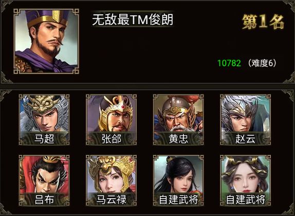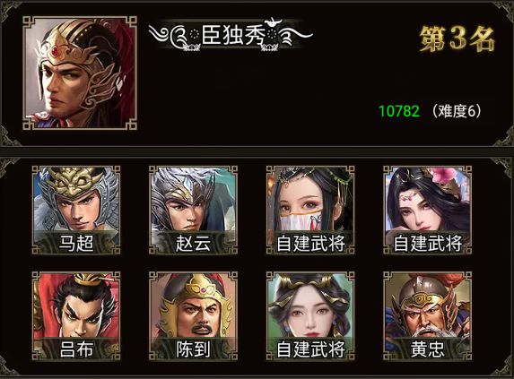 马超、赵云、吕布、陈到、黄忠、马腾、高览 和 三位自建武将