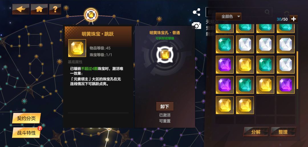 跳跃:指定天赋大区的镶嵌孔可作为天赋起始点,在无连线情况下直接点亮