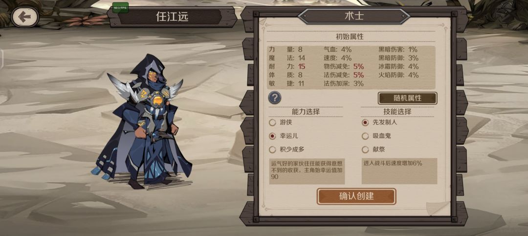 初始技能选择:幸运儿(容易完成成就,前期速拿成就金币)