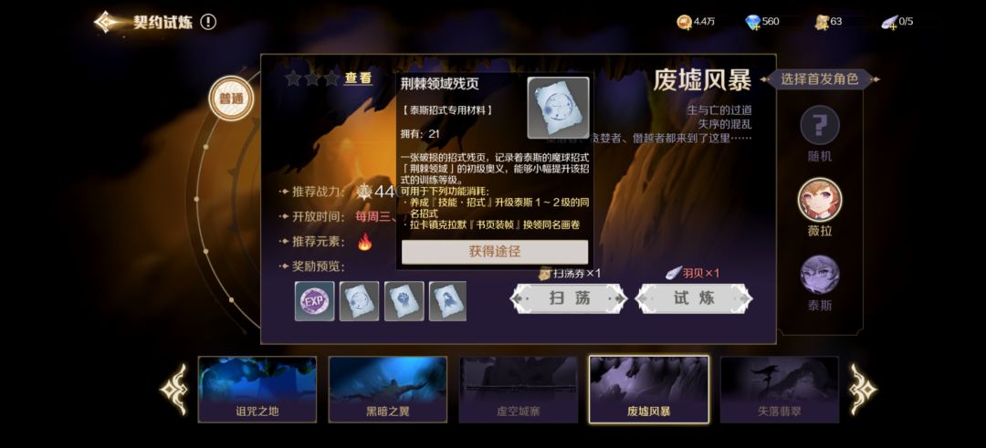 技能残页的获取方式有很多种。例如任务获取、活动获取、宝箱获取,最重要的是契约试炼。契约试炼中有很多关卡,其中就有关卡掉落技能残页。但并不是每天都开放,所以在去打技能残页的时候一定要看清。