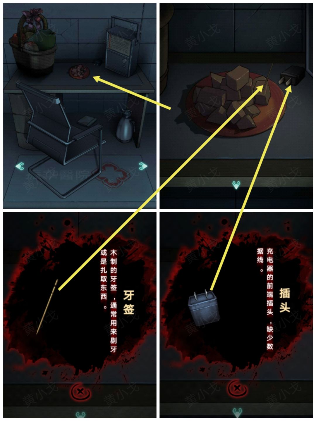 6.(桌子)点击桌子,获得【牙签】和【插头】