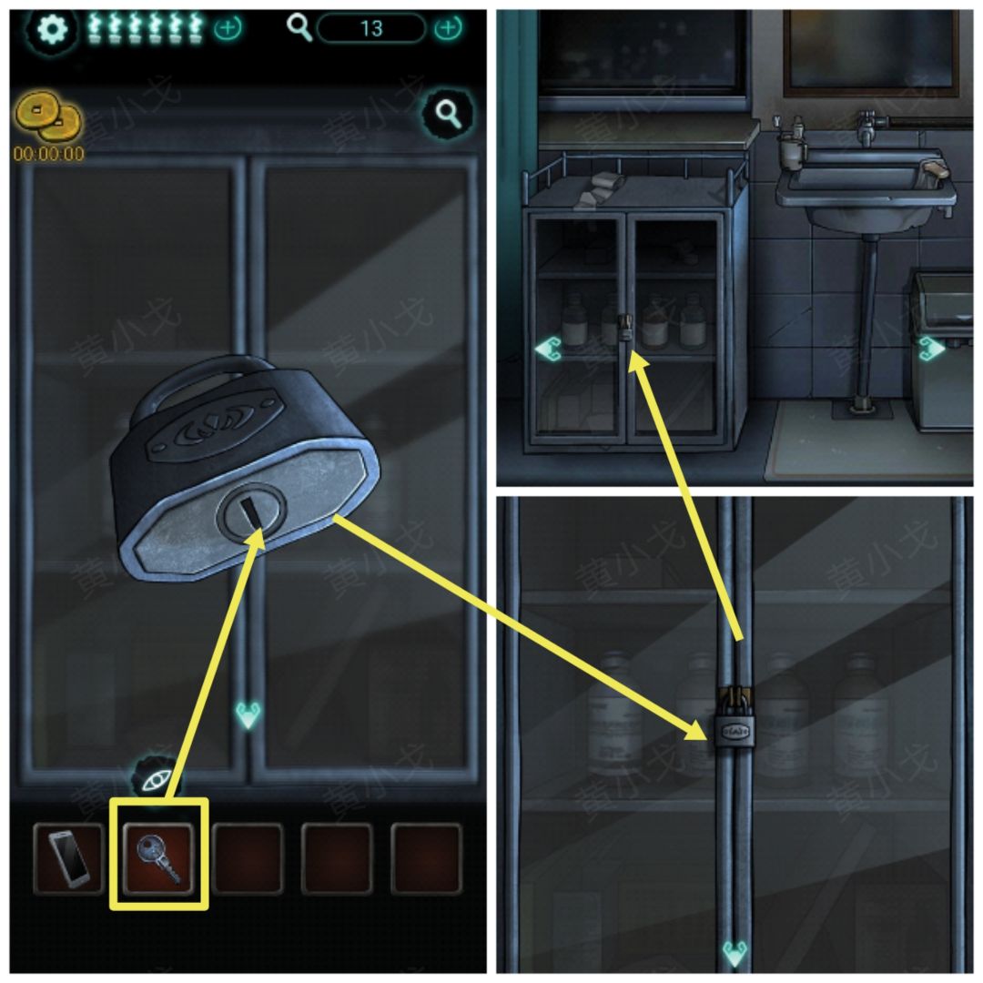 22.点击柜子上的锁,用【钥匙】打开