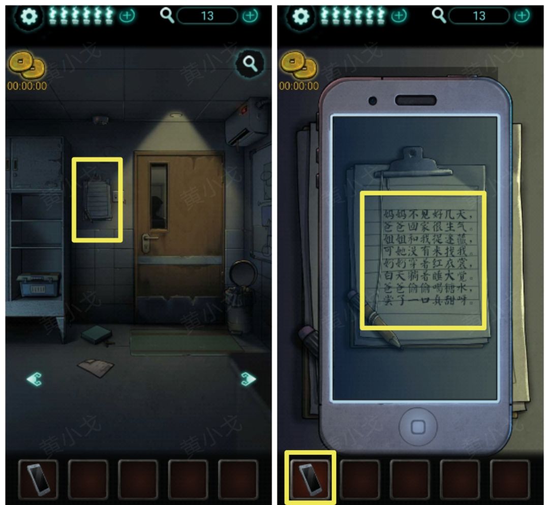 13.点击墙上的记录本,使用【手机】查看