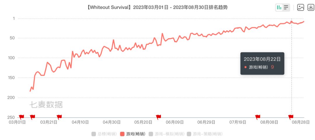 作为一款年初才在美国上线的新品SLG,仅用了半年左右的时间,就从180名开外拉升到畅销头部,《寒霜启示录》的这种表现不可谓不亮眼。