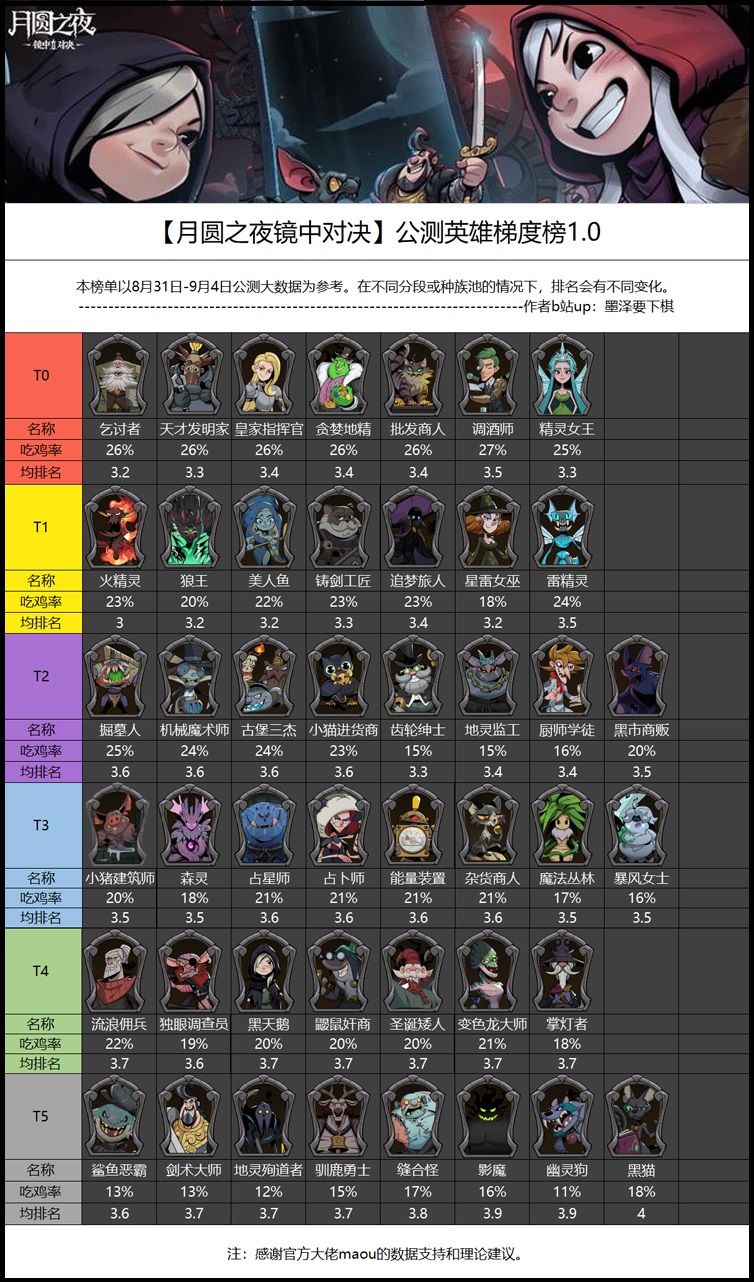 【月圆之夜镜中对决】公测英雄梯度榜1.0