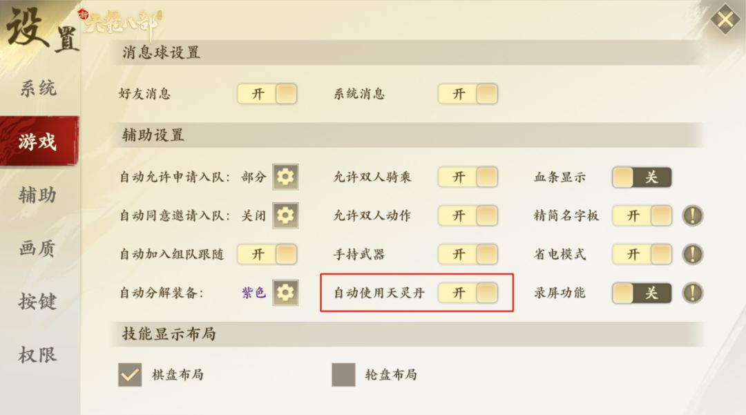 少侠可前往设置-游戏中选择自动使用天灵丹。