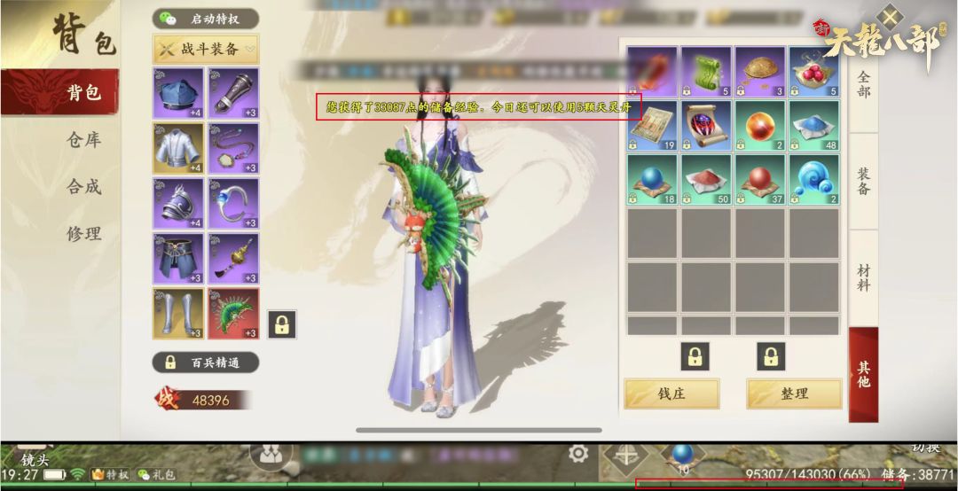 天灵丹可前往商城购买,使用后获得2倍储备经验,消灭怪物时等比转化为人物经验。