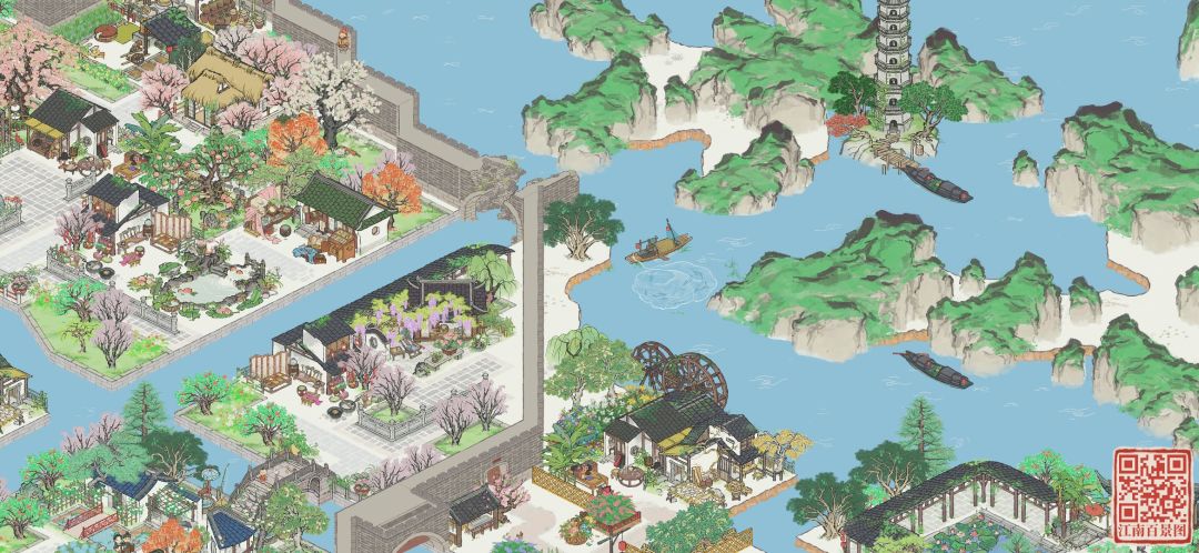 观戏桥这里把所有需要开山的和冒烟建筑的堆在了一起,为了显得山不突兀,在城外水里放了塔,效果还挺好的~