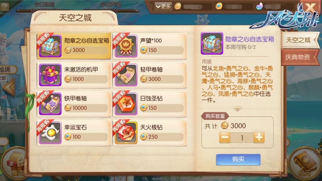 天空之城是大家获取龙骑伙伴及其养成材料的重要来源,其专属商店上不仅可以兑换龙骑战甲,还可以兑换勋章之心。