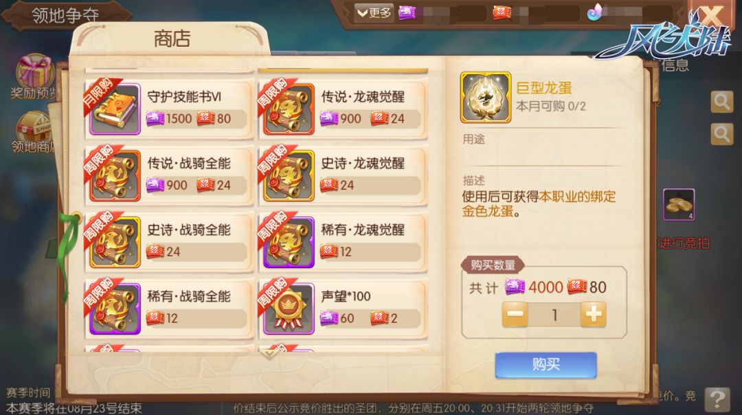 在领地商店中,可以兑换丰富的龙骑养成材料。在这里,不仅可以兑换本职业金色龙蛋,更可以兑换声望用于升级龙骑勋章。