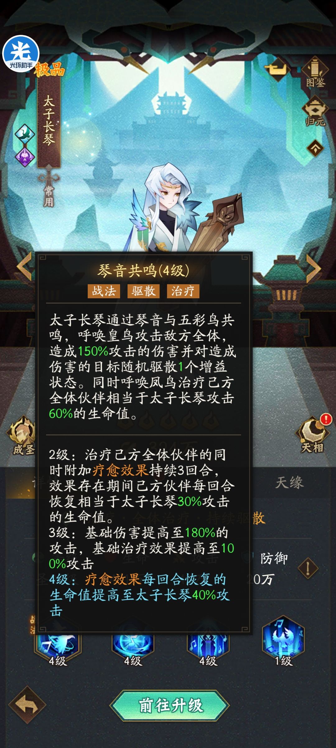【太子日相】释放战法随机清除己方全体英雄每人1个减益状态,疗愈效果生效也会随机清除每人1个减益状态。遇见控制队,开日相好使。