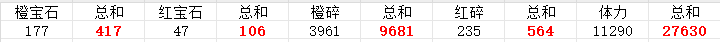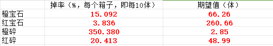 红宝石掉率偏低是因为最后6k体力不知道为啥只有2%的掉率,6470只出了13个红,气死我了。后续不统计是因为我自己宝石套9,没动力统计了。