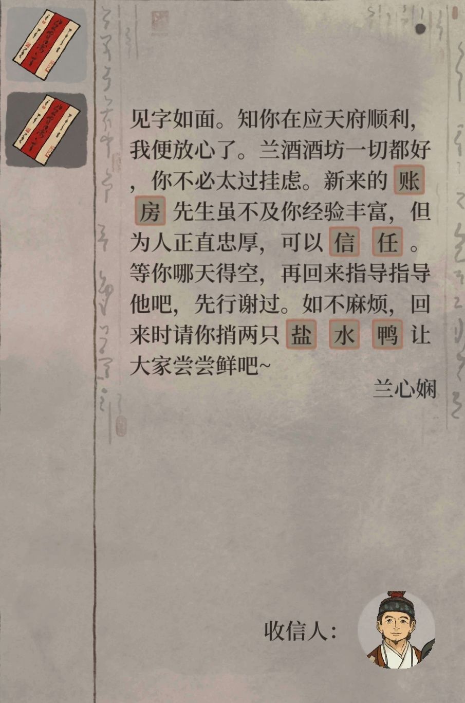 收件人:兰心娴