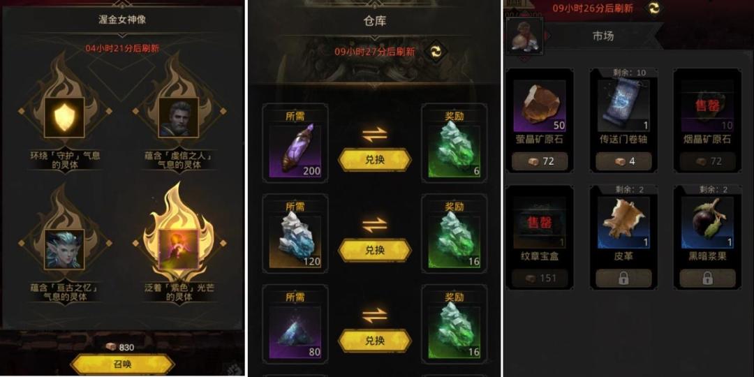 3.神像:消耗食物选择对应角色/职业抽取魂魄(锁定抽卡,随机品质),选择紫色灵体大概率出金(整只魂魄);