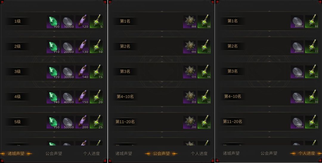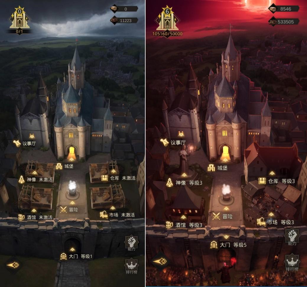 城堡:完成阶段任务获取声望,提升诸城声望等级,满级6级;