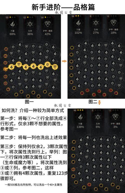 2.除了主C方法按教团公会的贴图,大概洗1个血量35费阿佐特500左右。由于主C是流程上一路有洗品格的,而品格也是一个逆时针方向逐步开放,开通240链接前,外边2围基本全洗完力量,剩下中间的9宫格,但这个9宫格要洗完也得倾家荡产