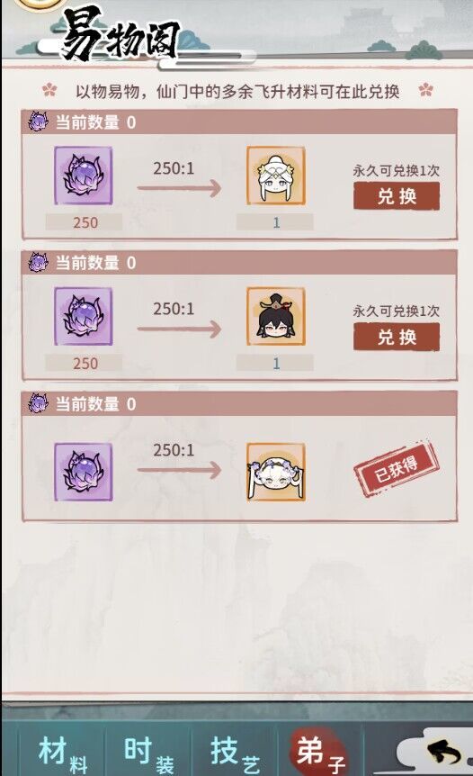 易物阁新增弟子页签,可消耗[凌霄果]兑换[邀月]、[明月]、[司音]。