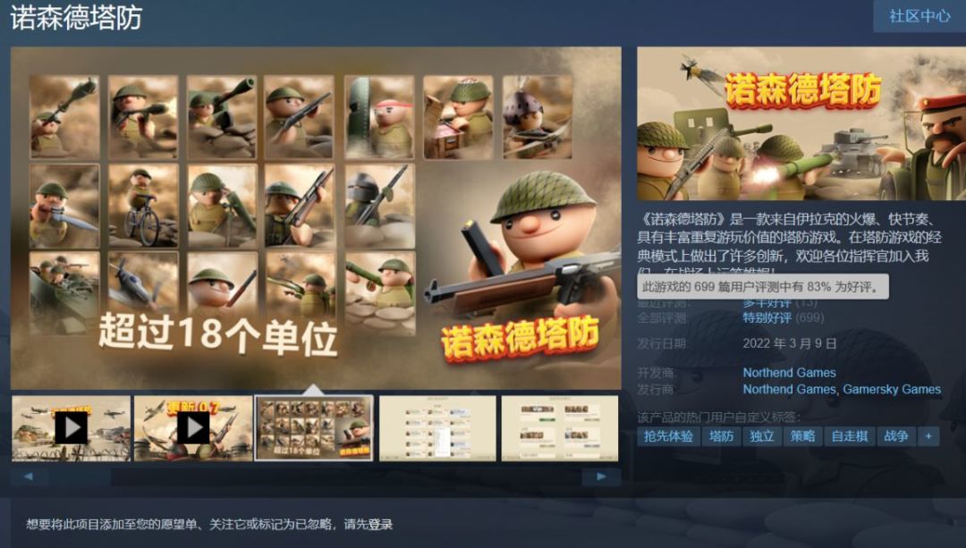 总的来说,《诺森德塔防》是一款甜品级塔防游戏,清新卡通的美术风格,轻松解压的战斗节奏,十余种部队兵种,九大游戏关卡,77类兵种强化,肉鸽机制的融入让游戏具有重复游玩的价值。