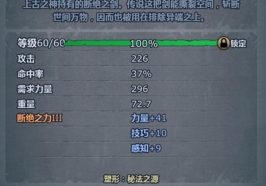 单手剑进图 431力 技巧465技