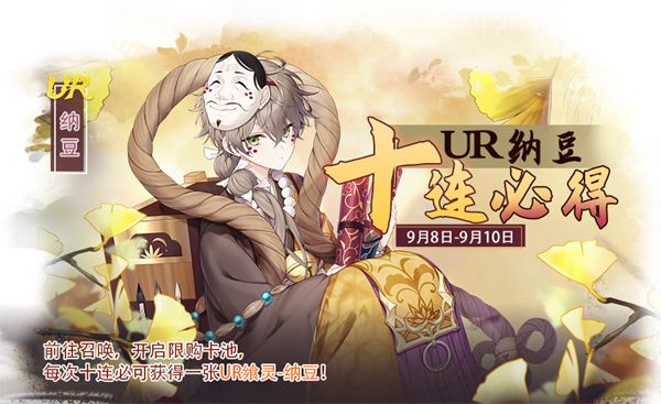 活动描述:活动期间,开启限购卡池,御侍大人可在商城界面使用幻晶石等道具兑换卡池专属道具,该卡池中UR飨灵-纳豆将重返缇尔菈大陆。