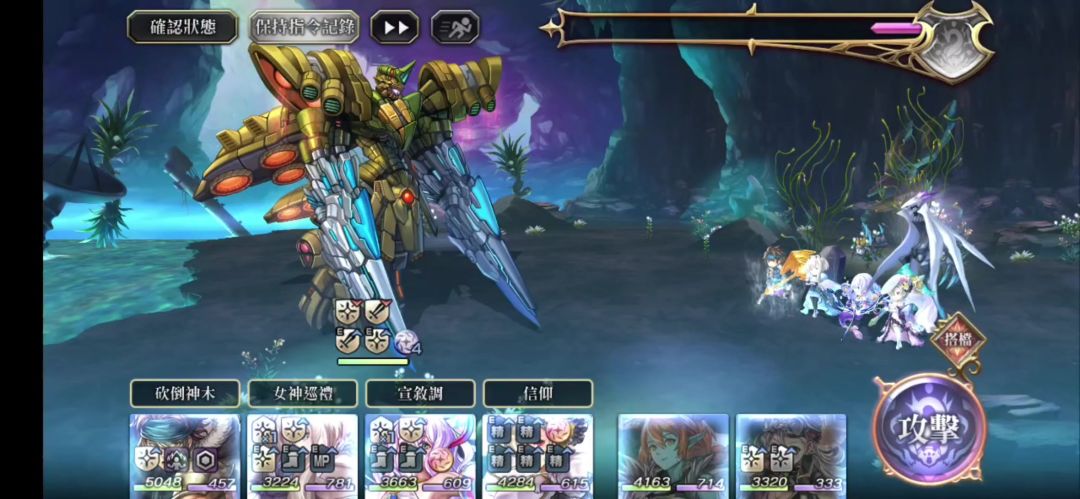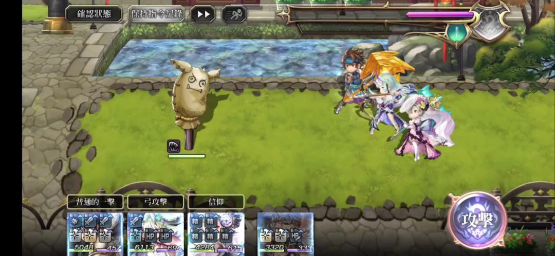 平地,先用砍刀神木减防,然后连续3回合普通的一击,持久战的话,继续用砍刀神木减防然后循环即可,亦可配置另一名减防手让他专心输出;