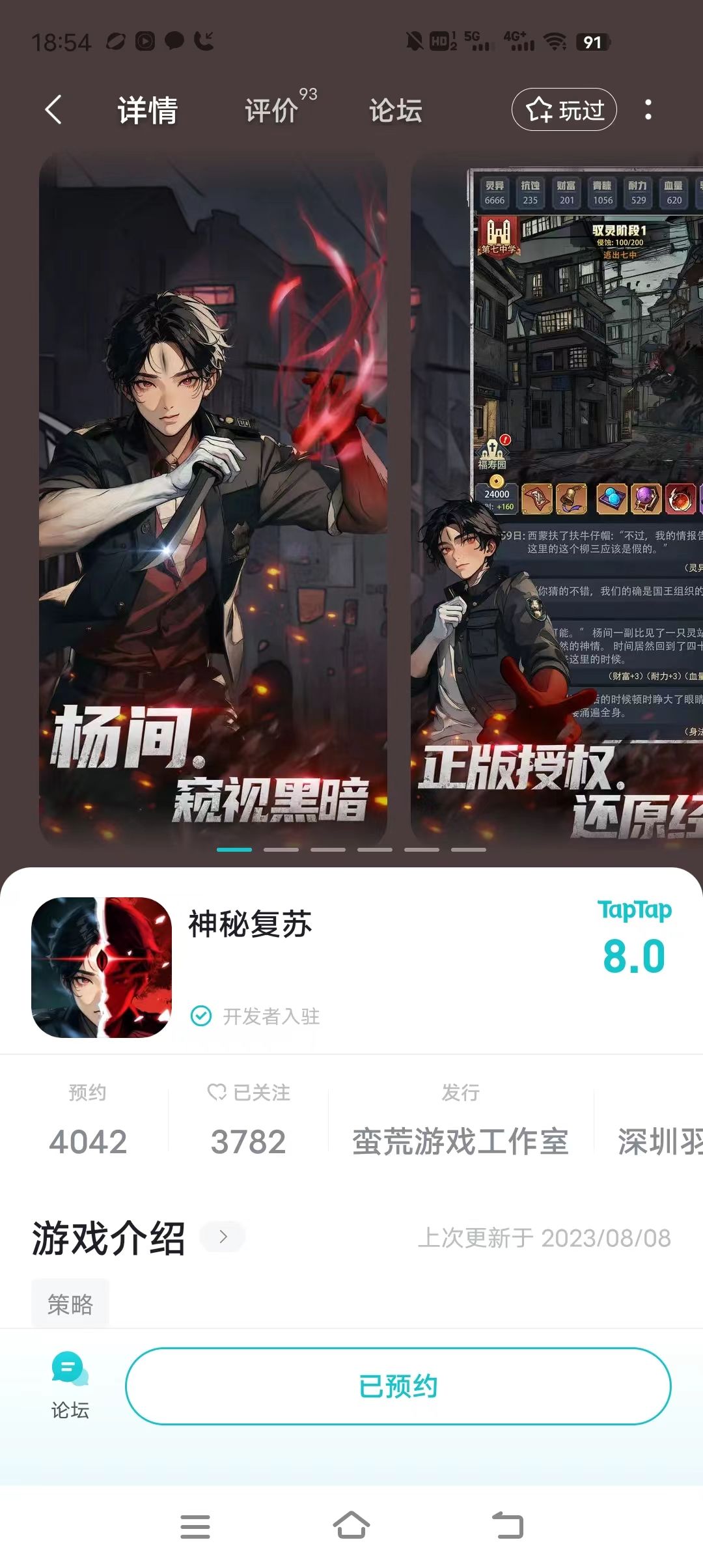 预约《神秘复苏》,并在该帖内发送预约成功的截图