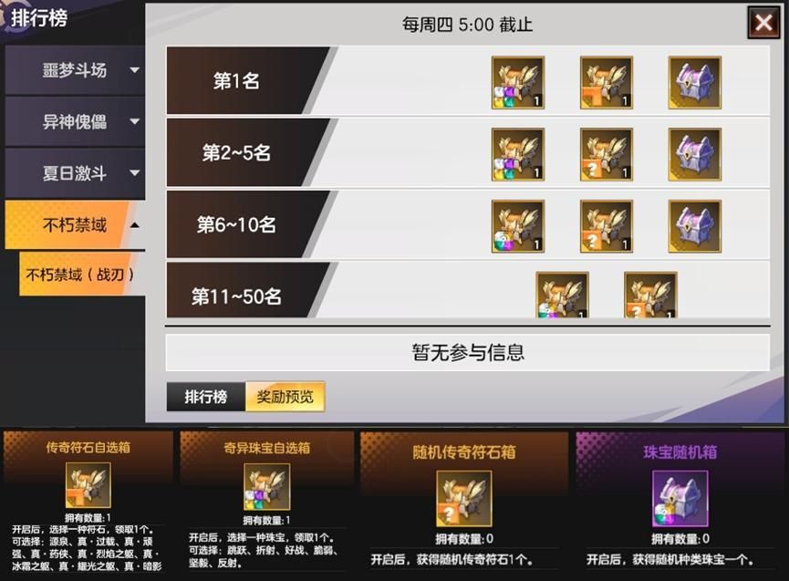 - 第11-50名:获得奇异珠宝随机箱*1、随机传奇符石箱*1