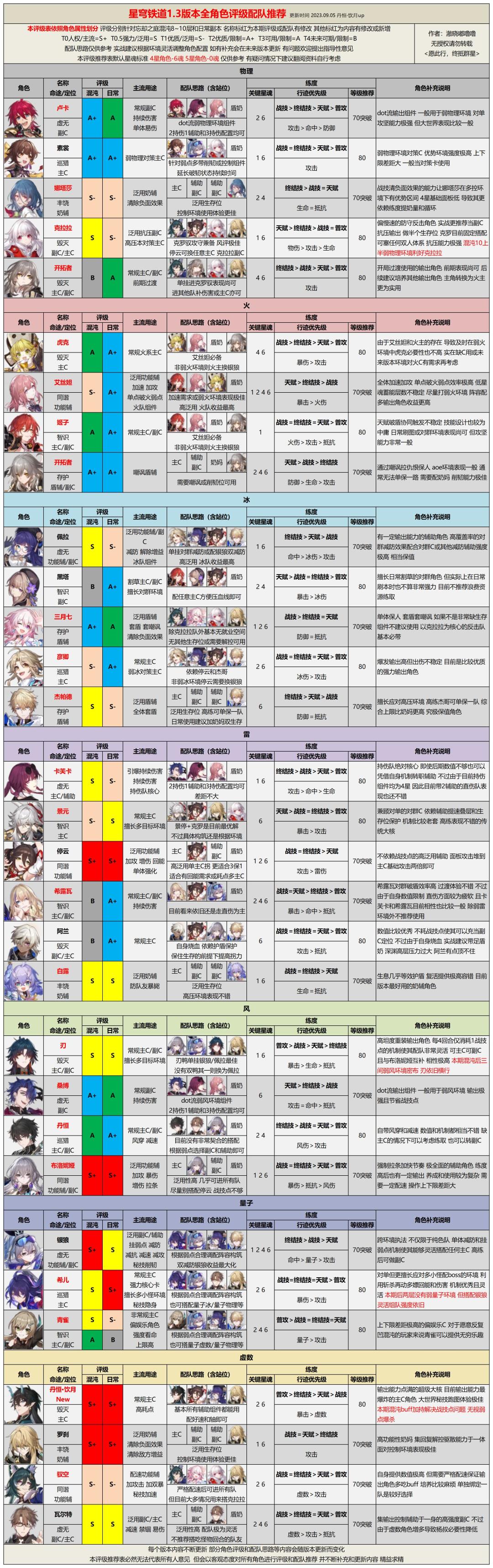 本期对角色评级进行了全方位的调整,星穹铁道强力角色太多,因此将评级标准进一步区分,防止出现一堆S+的情况。