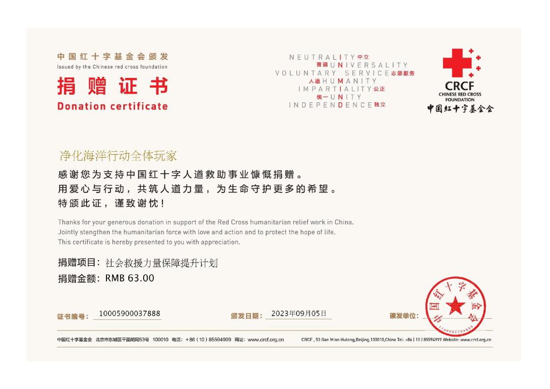 【游戏全部广告收入皆以净化海洋行动全体玩家名义捐赠中国红十字基金会】