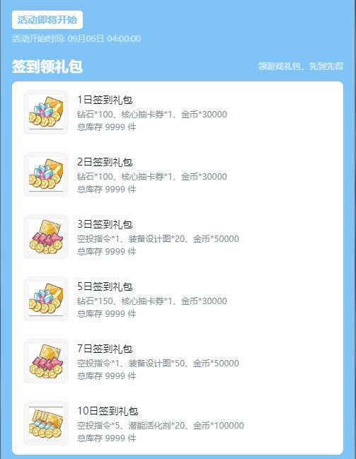⭐累计签到天数满足要求即可领取福利礼包。
