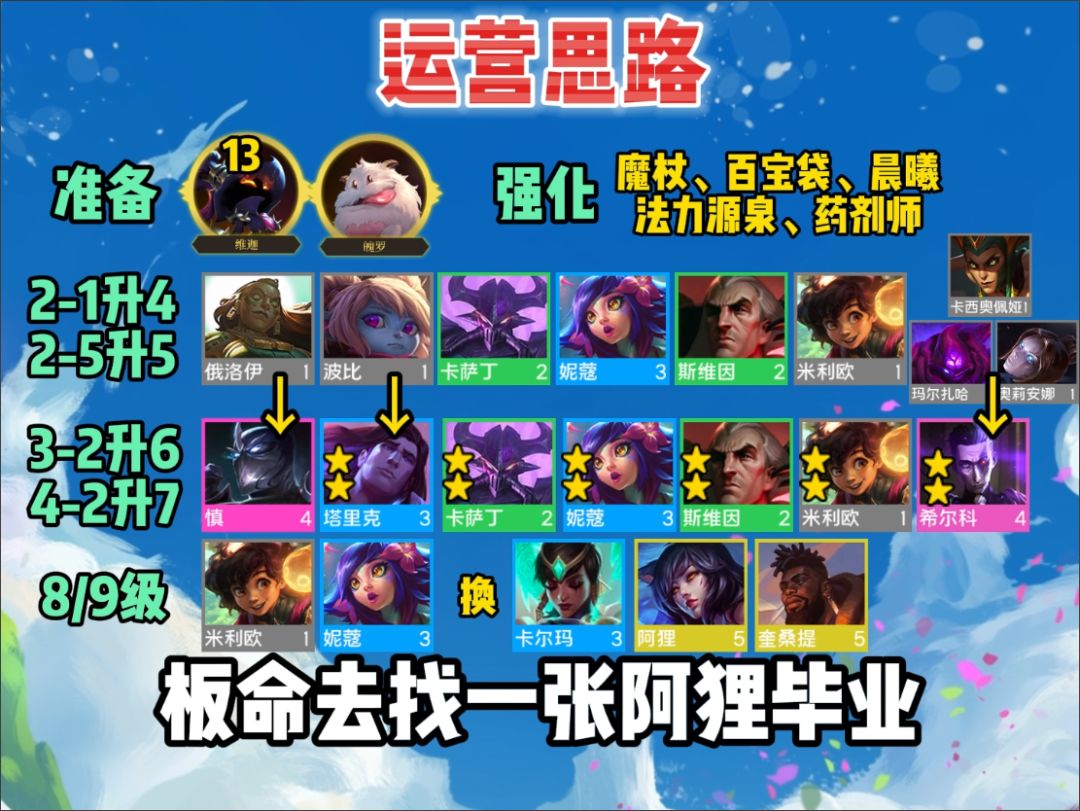 祖安能开么:是毒云能开么,有另一套构筑是带金克斯月男2祖安2枪手2巨神峰,然后补大头什么的,这套变阵就可以开祖安,但说实话,这种就是ADAP两个C羁绊没集中到一边上,伤害不突出,而你装备在只够做一个人的时候,要么月男纯刮,要么希尔科纯刮,还不如开4法希尔科阿狸双C伤害最大化