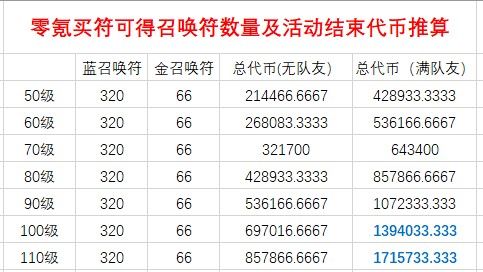 主要计算规则:蓝符每张取1-3星BOSS掉落代币平均值,金符取每三张符会出2个四星一个五星计算(金符存在保底,四张不出五星下次必出五星且本身出五星概率并不是很低所以按三张出一个五星算)。