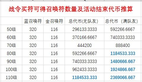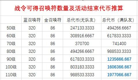 战令不买符活动结束可得代币表: