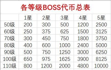 主要包含50级以后BOSS各个星级掉落代币数量;各等级各类型玩家活动结束可获得代币总量(推算,实际数值较推算值可能偏高也可能偏低)。