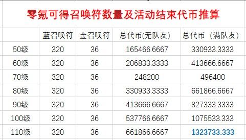 零氪不买符活动结束可得代币表: